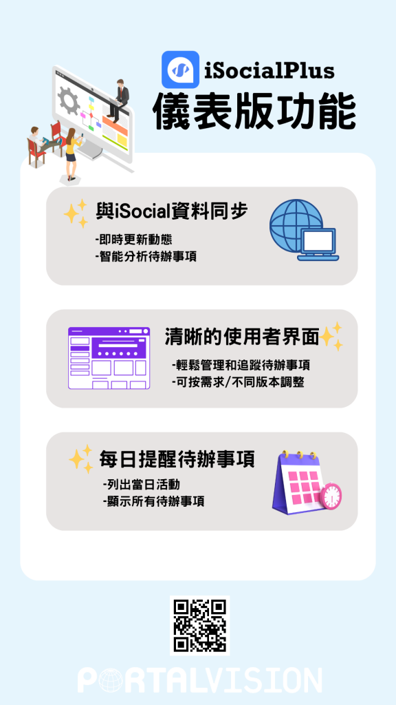 我們的儀表板功能與iSocial資料即時同步,讓您隨時掌握最新動態。輕鬆管理和追蹤待辦事項,享受智能分析的便利。使用者友好的界面讓您輕鬆操作,按需調整滿足個人偏好和版本需求。